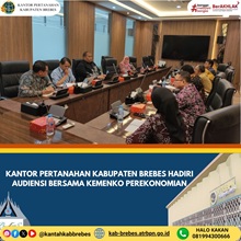 Selasa, 11 November 2025, Kantor Pertanahan Kabupaten Brebes menghadiri kegiatan audiensi bersama Kementerian Koordinator Bidang Perekonomian Republik Indonesia. Kegiatan ini berlangsung di ruang r... Selengkapnya