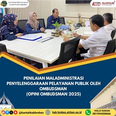 Kantor Pertanahan Kabupaten Brebes menerima kunjungan tim dari Perwakilan Ombudsman Republik Indonesia Provinsi Jawa Tengah dalam rangka penilaian maladministrasi terhadap penyelenggaraan pelayanan... Selengkapnya