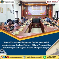 Jumat, 10 Oktober 2025 Kantor Pertanahan Kabupaten Brebes menghadiri Monitoring dan Evaluasi (Monev) Kegiatan Pengendalian dan Penanganan Sengketa Tahun 2025 yang diikuti oleh seluruh Kantor Pertan... Selengkapnya