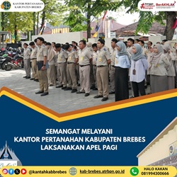 Kantor Pertanahan Kabupaten Brebes melaksanakan kegiatan apel pagi rutin di halaman kantor sebagai bagian dari upaya penegakan disiplin dan kekompakan pegawai. pentingnya menjaga kedisiplinan dalam... Selengkapnya