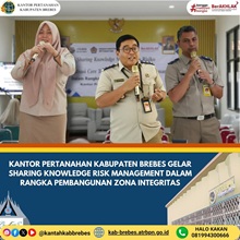 Kantor Pertanahan Kabupaten Brebes melaksanakan kegiatan Sharing Knowledge Risk Management sebagai bagian dari komitmen pembangunan Zona Integritas, khususnya pada implementasi Mekanisme Pengendali... Selengkapnya