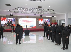 Jakarta - Sekretaris Jenderal (Sekjen) Kementerian Agraria dan Tata Ruang/Badan Pertanahan Nasional (ATR/BPN), Dalu Agung Darmawan, melantik dan mengambil sumpah/janji 17 Pejabat Fungsional di ling... Selengkapnya